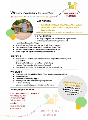 Stellenausschreibung PÄDAGOGISCHE FACHKRAFT